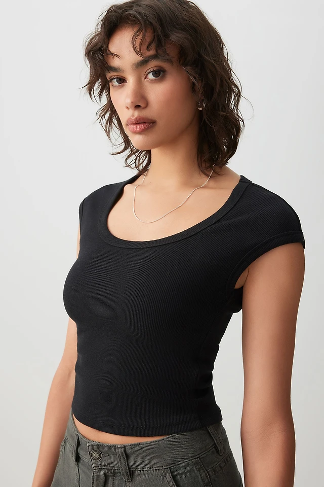 Ardene Cropped Off Shoulder T-Shirt in Black | Size | Cotton/Elastane