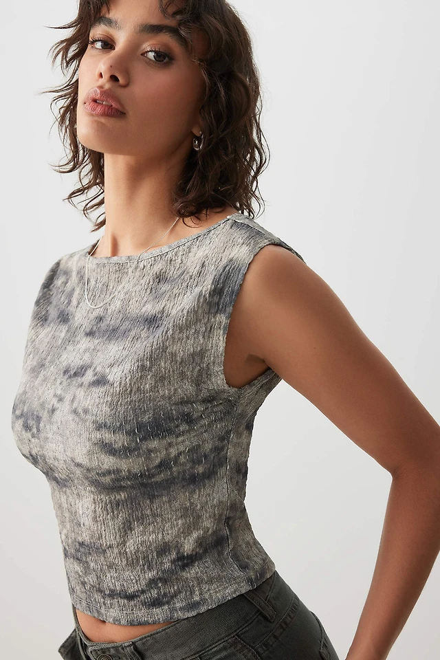 Ardene Crop Textured Boat Neck Tank in Dark Grey | Size | Polyester/Spandex