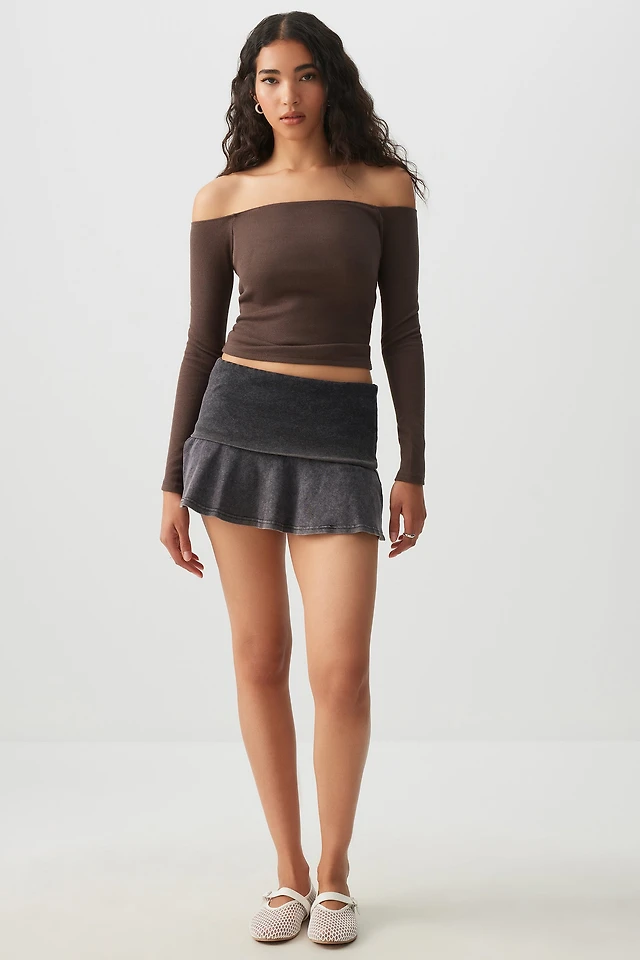 Ardene Pleated Bubble Mini Skirt in Dark Grey | Size | Nylon/Cotton