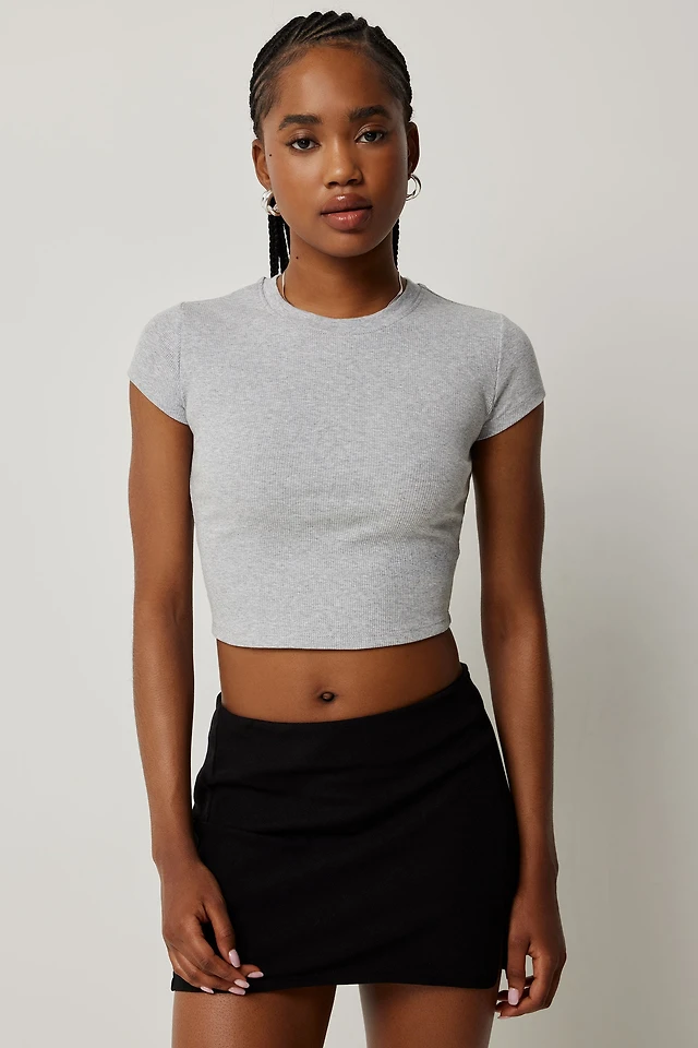 Ardene Ultra Crop Fitted T-Shirt in Light Blue | Size | Cotton/Elastane
