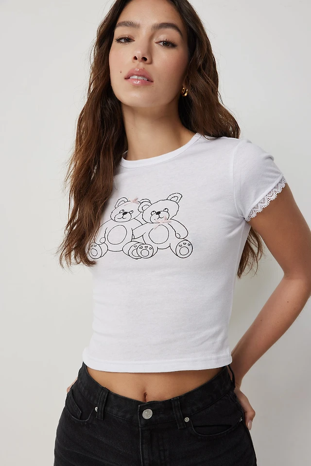 Ardene Ruched Graphic Baby T-Shirt in Black | Size | Spandex/Cotton