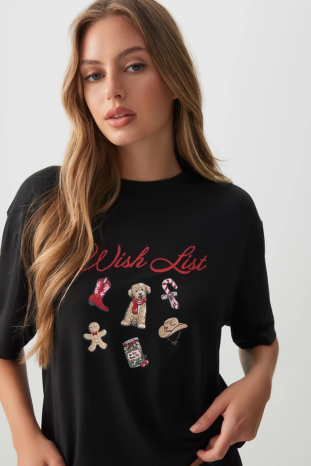 Teddy Varsity League Embroidered Graphic Boyfriend Tee