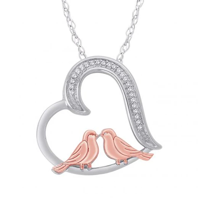 White & Rose Gold Double Heart Dancing Diamond Pendant