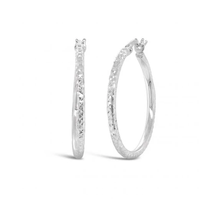 10K White Gold Pattern Creole Earrings