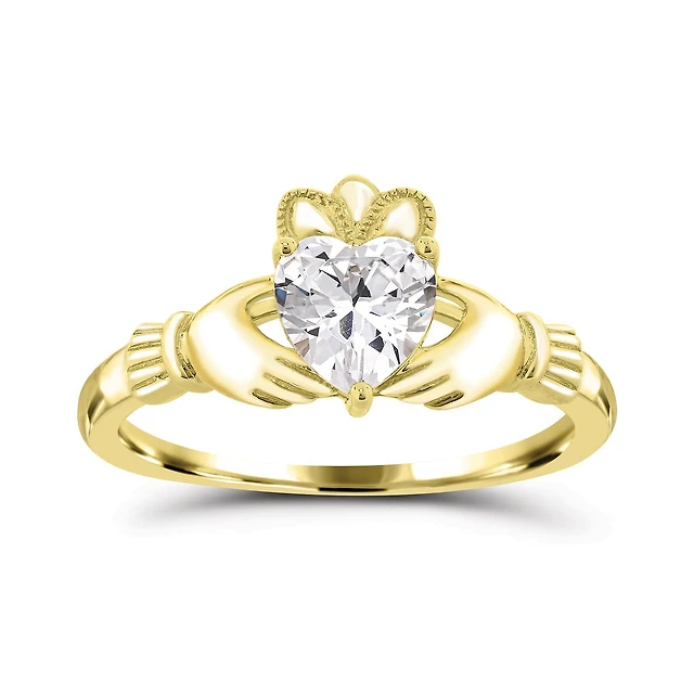10K Yellow Gold Cubic Zirconia Claddagh Ring