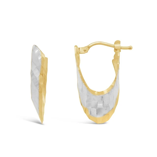 10K Yellow Gold Hammered Diamond Cut Hoop Earrings