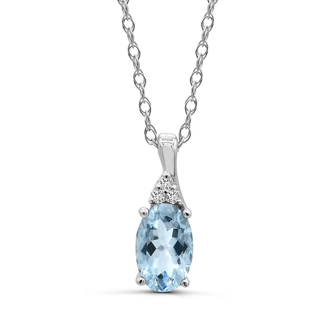 10K White Gold Blue Topaz & Diamond 18" Pendant