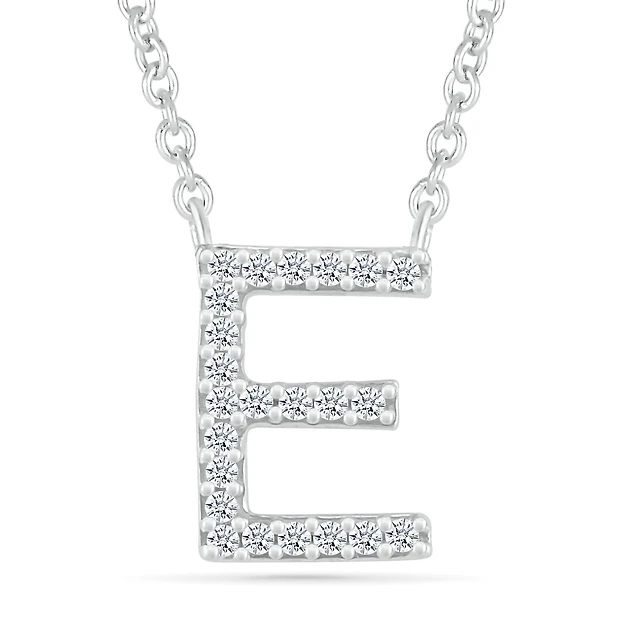 Sterling Silver & Diamond "E" Initial Necklace