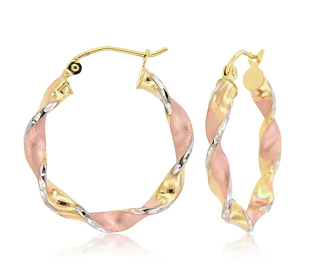 10K Yellow Gold Hammered Diamond Cut Hoop Earrings