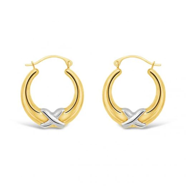 10K Yellow Gold Hammered Diamond Cut Hoop Earrings