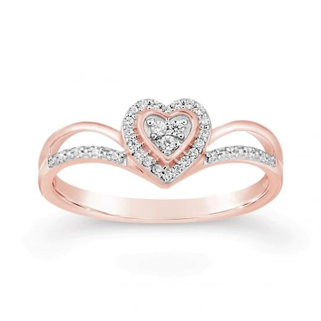 10K Rose Gold 0.10CTW Diamond Heart Ring