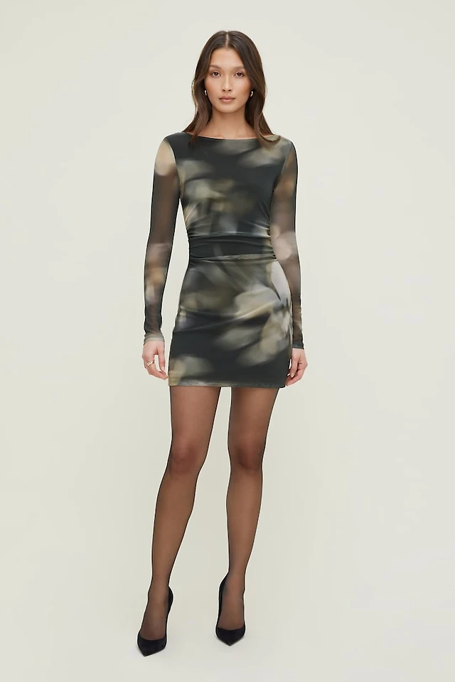 Cleo Printed Mesh Long Sleeve Top.