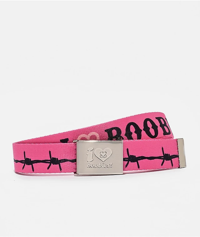 Keep A Breast Foundation I Heart Boobies Barbed Pink Web Belt