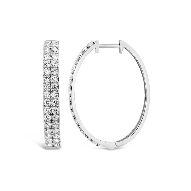 New Brilliance 10K White Gold Lab Grown 1.00CTW Diamond Oval Hoop Earrings