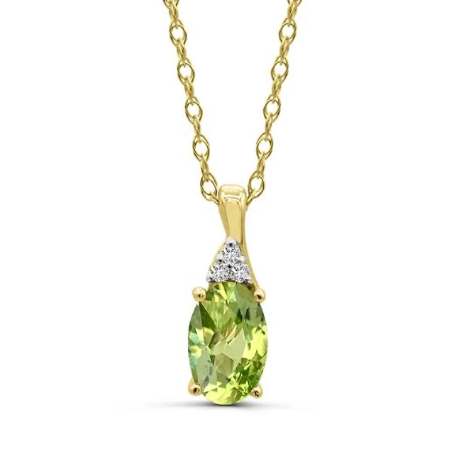 10K Yellow Gold Peridot & Diamond 18" Pendant