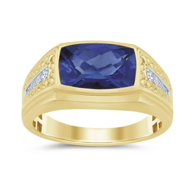 10K White Gold Blue Sapphire & Canadian Diamond Ring