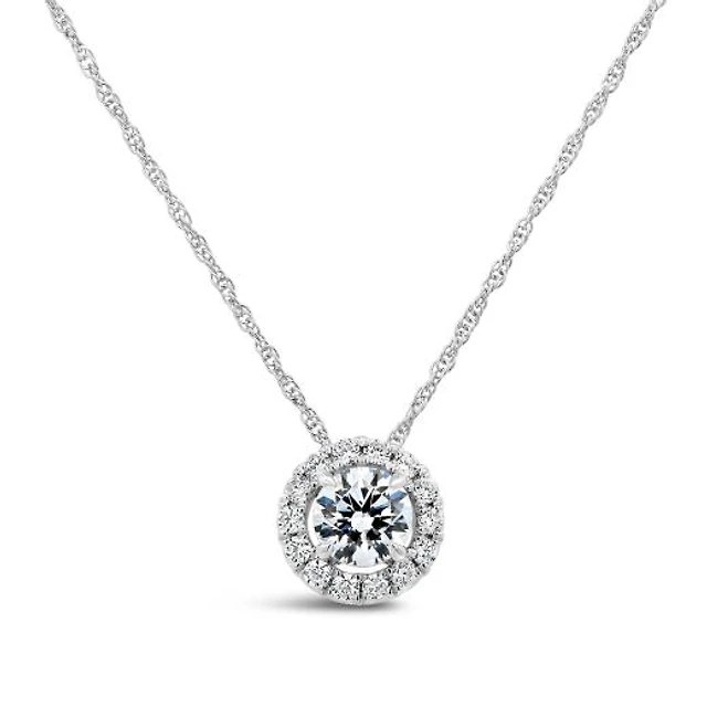 New Brilliance 10K White Gold Lab Grown 1.00CTW Diamond Halo Pendant