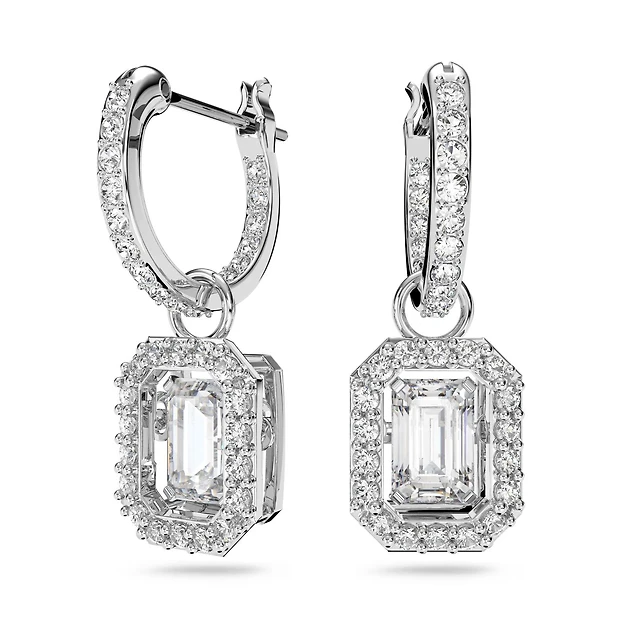 10K White Gold 2X10mm Diamond Cut Hoop Earrings