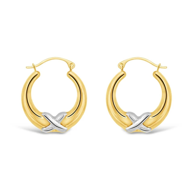 10K White Gold 2X10mm Diamond Cut Hoop Earrings