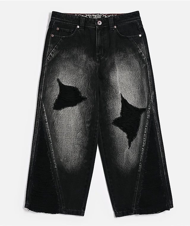 Vitriol Kids Depth Distressed Black Wash Ultra Wide Leg Jeans