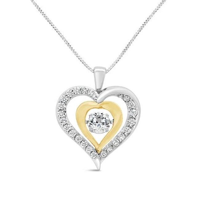 10K White & Yellow Gold Lab Grown 0.77CTW Dancing Diamond Heart Pendant