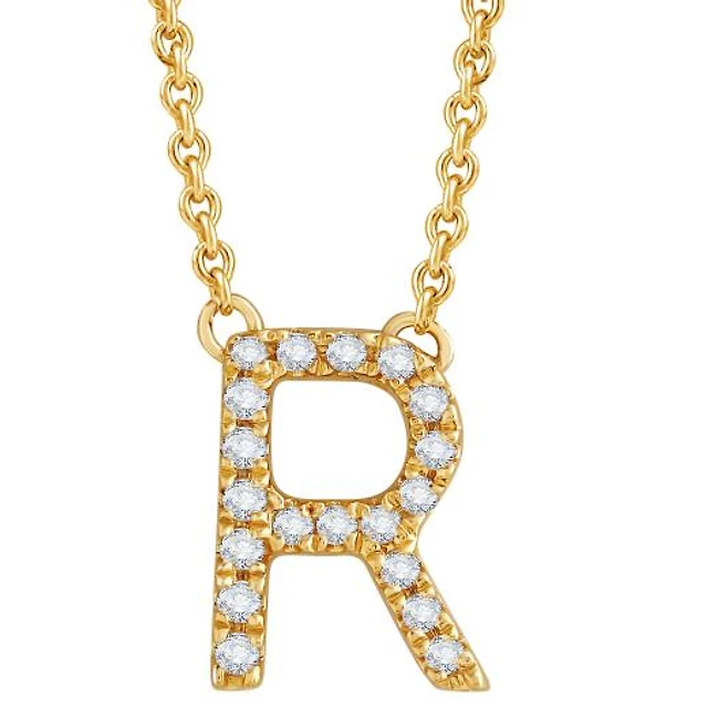 Bella Moda 10K Yellow Gold 0.10CTW Diamond Initial "R" Necklace