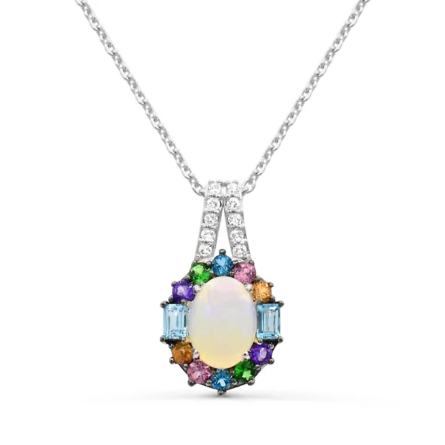 Sterling Silver Opal & Multi Gemstone Ring