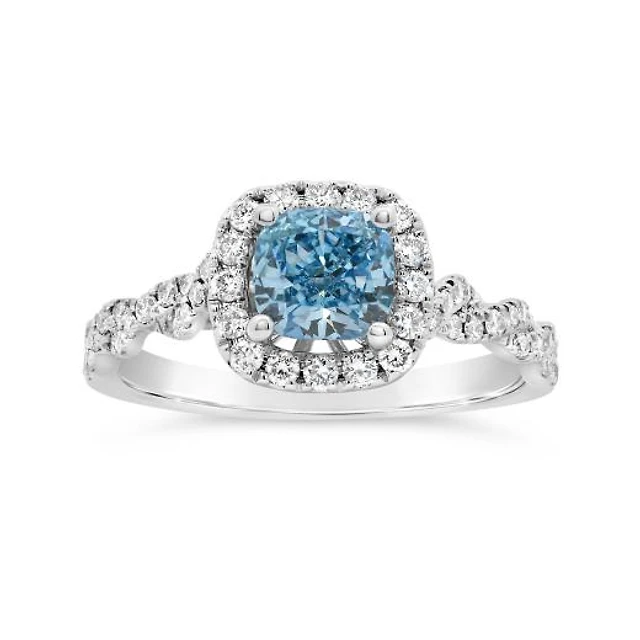 New Brilliance Lab Grown 1.50CTW Blue & White Diamond Ring in 14K White Gold
