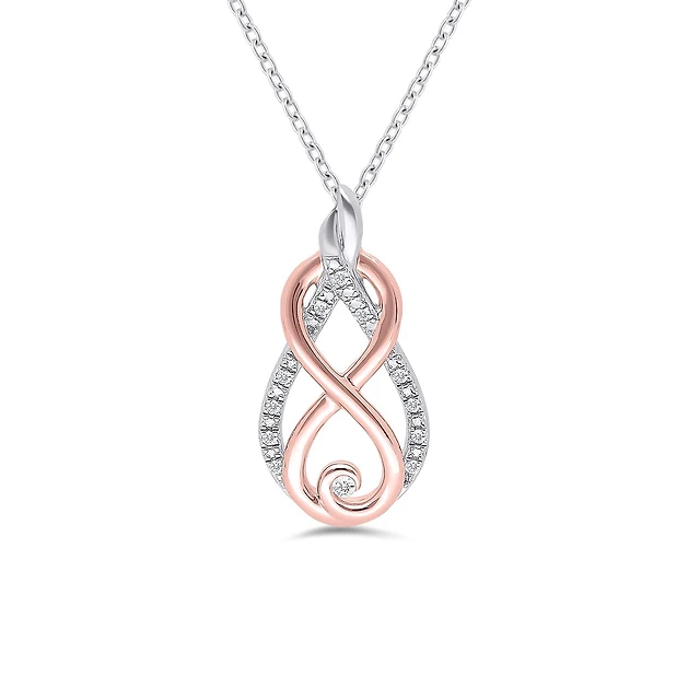 Sterling Silver & Rose Gold Diamond Heartbeat Pendant