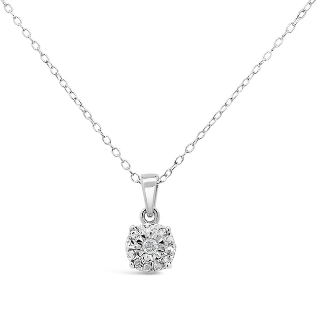 Radiant Universe Sterling Silver 0.11CTW Diamond Double Star Necklace
