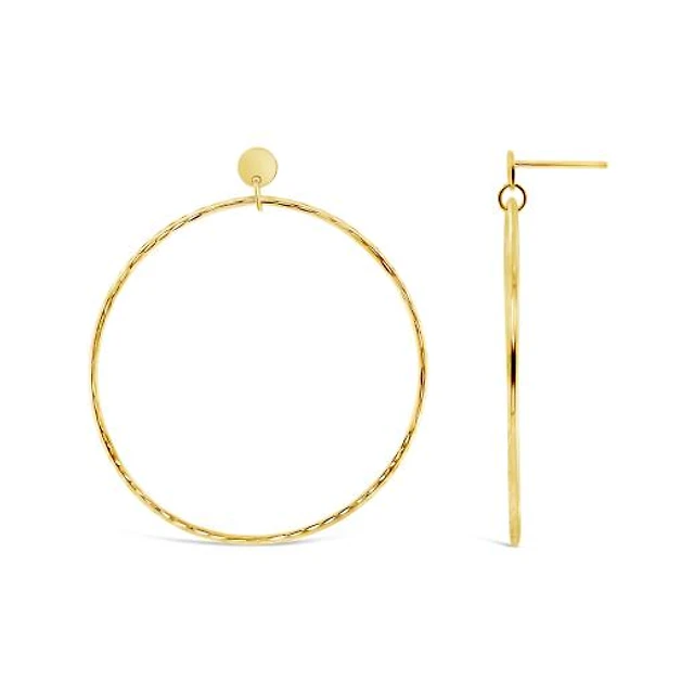 10K Yellow Gold 2x30mm Diamond Cut Hoop Earrings