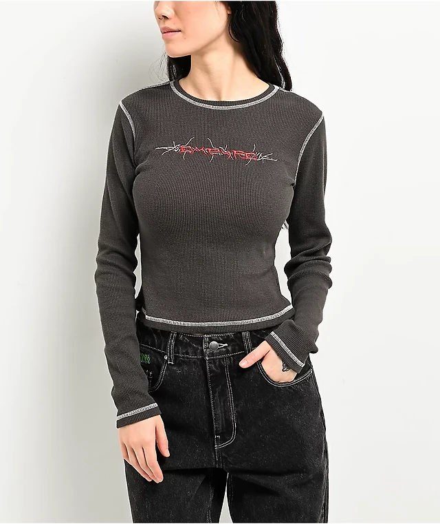 Empyre Thelma Grey Crop Thermal Long Sleeve T-Shirt