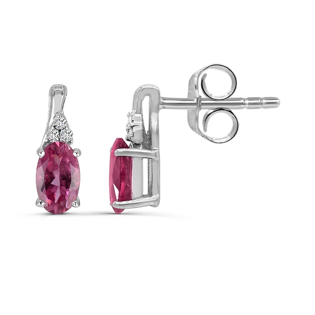 10K White Gold Pink Tourmaline & Diamond Earrings