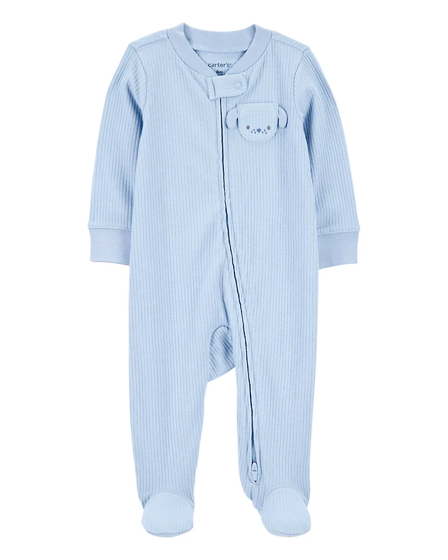 Baby Bear 2-Way Zip Ribbed Sleeper pyjamas