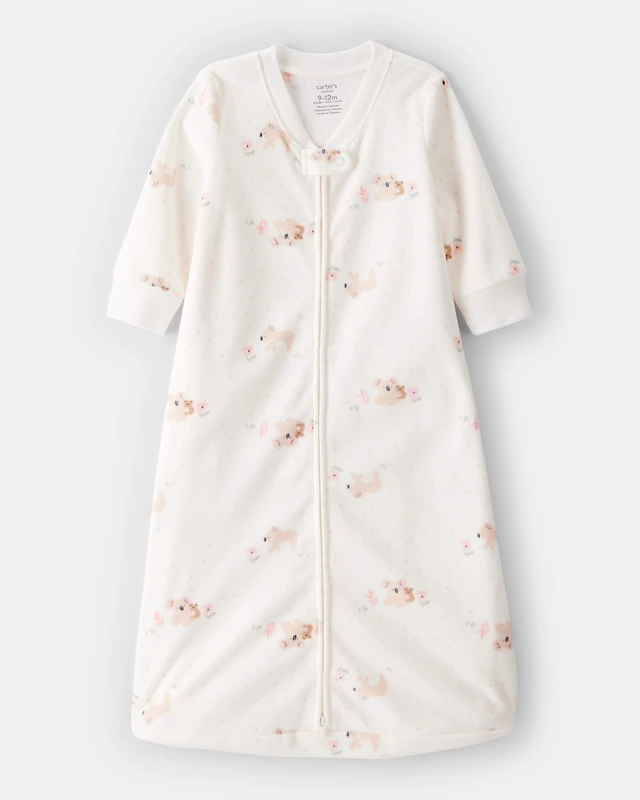 Baby Girl Animal Ski Print Loose Fit Long-Sleeve Sleeper - Cream