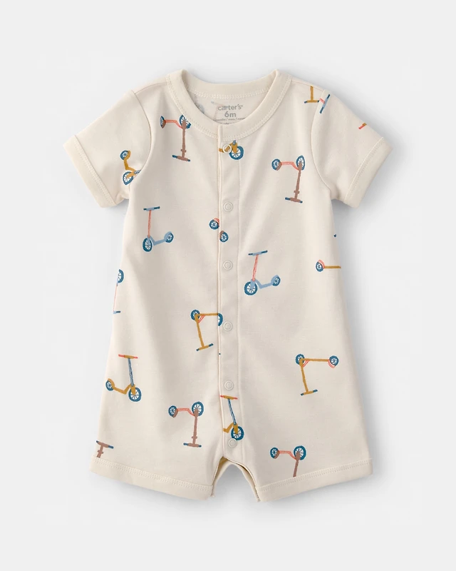 Baby Scooter Short-Sleeve Romper - Cream