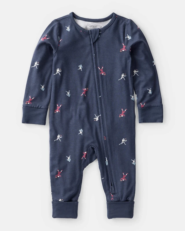 Baby Boy Dino Striped 2-Way Zip Long-Sleeve Sleeper - Blue