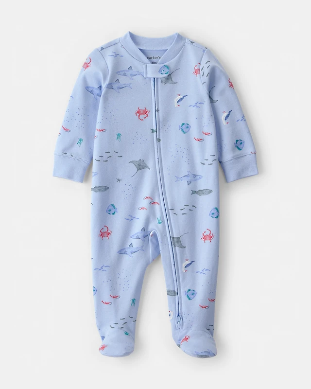 Baby Sea Animals 2-Way 100% Cotton Zip Sleeper - Blue