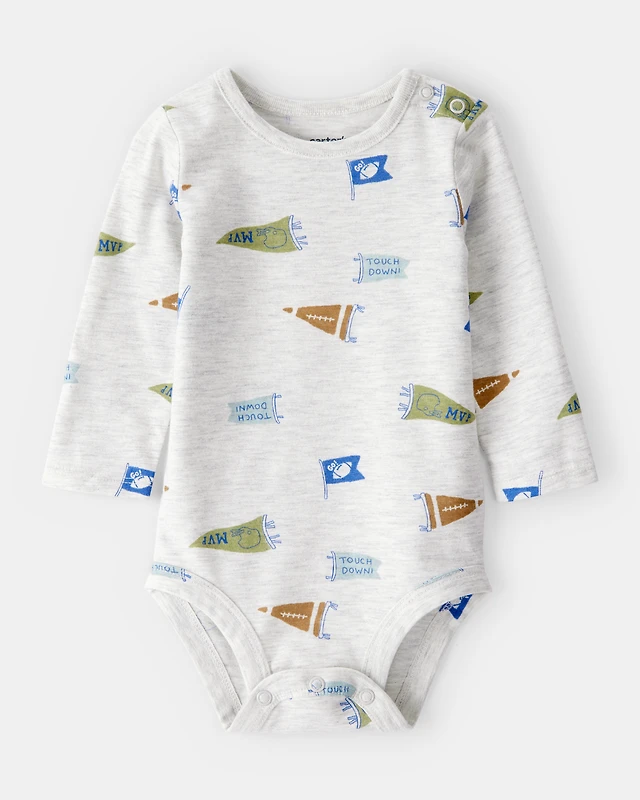 Baby Boy 2-Piece Football Print PurelySoft Long-Sleeve Multipack Bodysuits - Navy/Grey