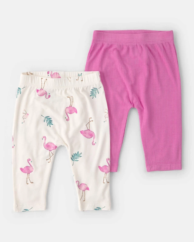 Baby Girl 2-Pack Flamingo PurelySoft Pull-On Pants - Pink/Ivory