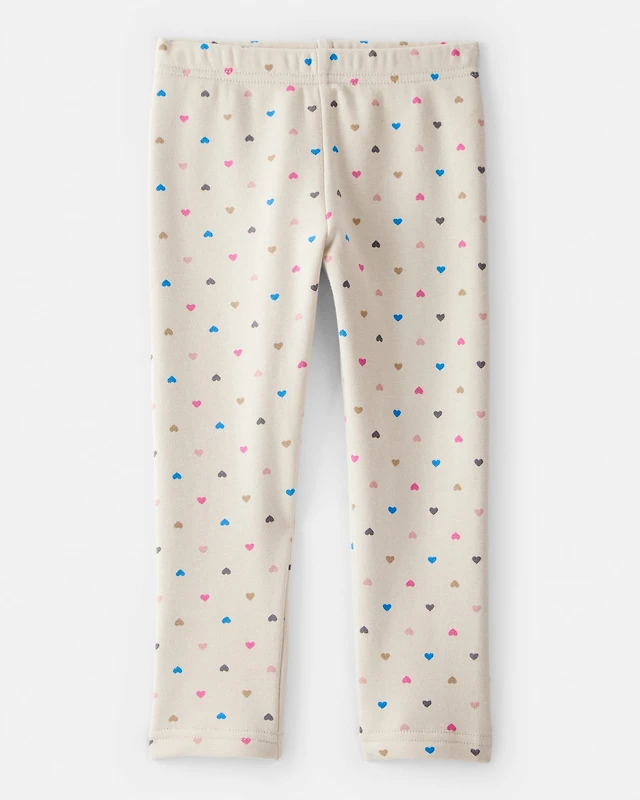 Toddler Girl Heart Pull-On Stretch Cozy Leggings - Cream