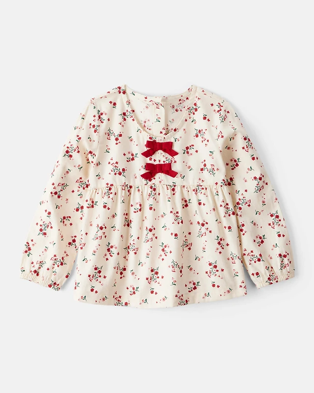Toddler Girl Floral Print 100% Cotton Long-Sleeve Top - Ivory