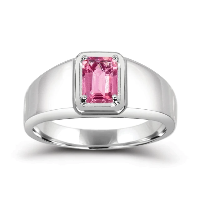 10K White & Yellow Gold Created Sapphire 3-Stone Men's Ring