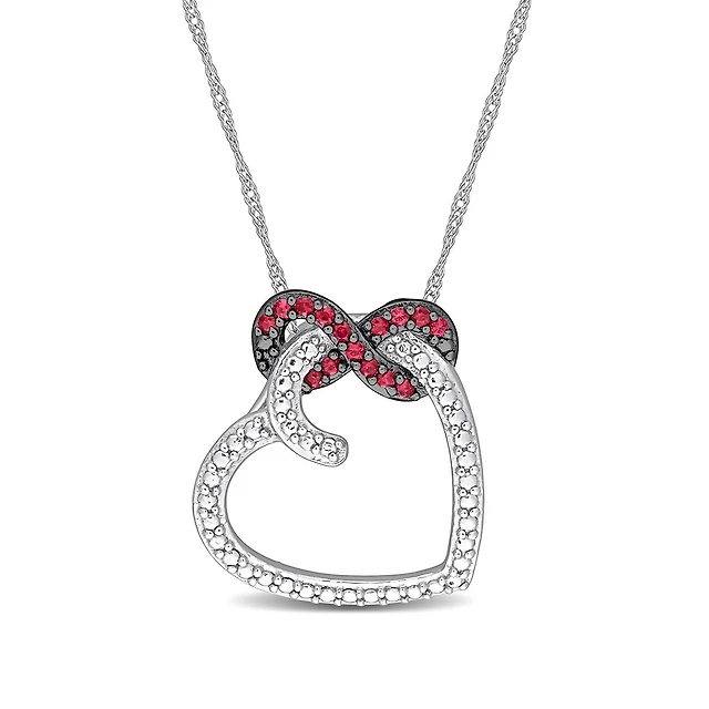 POLAR PINK Sterling Silver 16" Pink Sapphire & Diamond Heart Necklace