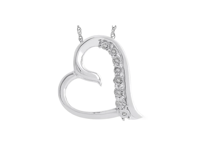 Sterling Silver Cubic Zirconia 19" Mom Heart Necklace