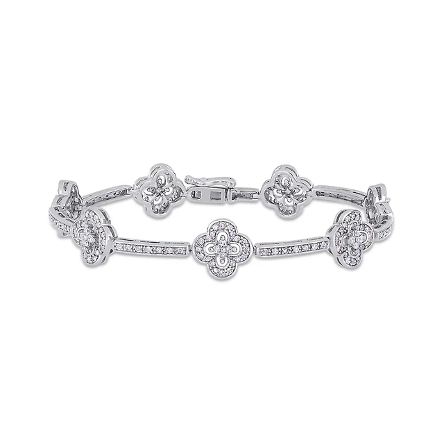 Julianna B Sterling Silver Black Spinel, Created White Sapphire Tennis Bracelet