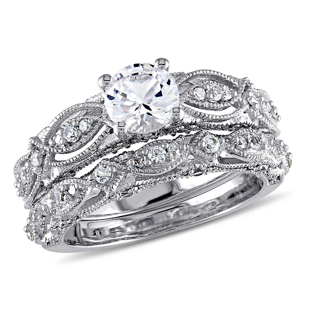 JULIANNA B 10K White Gold Created Sapphire & Diamond Bridal Set