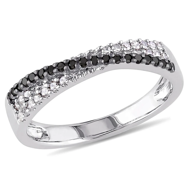 JULIANNA B 0.10CTW Black & White Diamond Fashion Band Sterling Silver