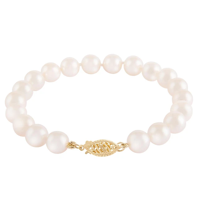 14K Yellow Gold 7.5-8mm White Freshwater Pearl Earrings