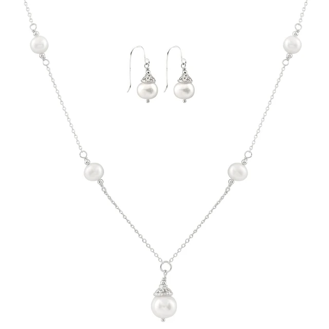 Sterling Silver 7-8mm White Freshwater Pearl Cubic Zirconia Earrings